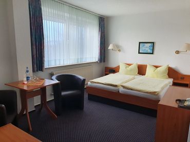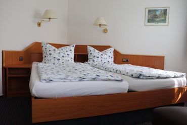 Unseren Hotelgästen bieten wir Dreibettzimmer/ Doppelzimmer und Einzelzimmer. Alle Zimmer sind komfortabel eingerichtet mit einem Schreibtisch, Fernseher und W-Lan. Die großzügigen Bäder verfügen über Dusche, WC und Fußbodenheizung.